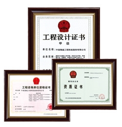 中國海誠及各子公司持有國家住房和城鄉建設部、地方建設主管部門頒發的輕紡、建筑、化工石化醫藥、市政、商物糧、電力、機械、電子通信廣電、農林、環境工程等多項行業、專業及專項的甲、乙級工程設計資質;持有上述主管部門頒發的建筑工程、機電工程施工總承包一級,鋼結構、防水防腐保溫工程專業承包一級等建筑業企業資質,具備從事相關專業工程總承包業務的資質和能力;持有國家住房和城鄉建設部頒發的工程監理綜合甲級資質。具有中國工程咨詢協會頒發的建筑、輕工、紡織、化工石化醫藥、電力、市政、生態建設和環境工程等專業工程咨詢單位甲級資信證書。擁有國家自然資源部及地方自然資源主管部門頒發的城鄉規劃(國土空間規劃)編制甲、乙級資質,可承擔相應的國土空間總體規劃、專項規劃的編制。擁有各地方市場監督管理局頒發的壓力容器設計、壓力管道設計等特種設備生產許可證。公司具有對外承包經營和對外經營貿易資格,是國家高新技術企業。