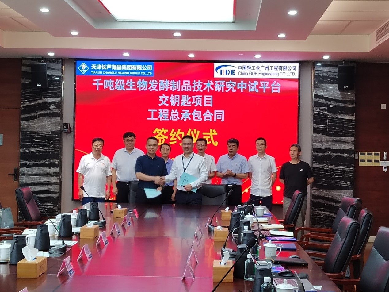 日前,中國海誠所屬中國輕工業廣州工程有限公司(以下簡稱廣州公司)與天津渤海化工集團簽約“千噸級生物發酵制品技術研究中試平臺交鑰匙項目”工程總承包合同。