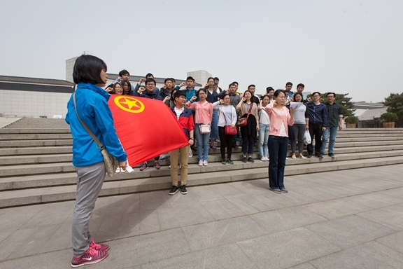 青年團員首先來到坐落于七七事變的爆發地—北京西南盧溝橋畔的宛平城內的中國人民抗日戰爭紀念館參觀。中國人民抗日戰爭紀念館是全國唯一一座全面反映中國人民抗日戰爭歷史的大型綜合性專題紀念館。在這里大家認真參觀了以“偉大勝利 歷史貢獻”紀念中國人民抗日戰爭暨世界反法西斯戰爭勝利70周年主題展。展覽通過大量的歷史圖片及珍貴的實物,借助景觀、油畫、雕塑、幻影成像、影視片等多樣化的展示手段,全景式的向大家展示了全國各民族、各階級、各黨派、各社會團體、各界愛國人士、港澳臺同胞和海外僑胞英勇抵抗日本軍國主義侵略的光輝歷史,讓大家從多個角度不同的側面了解抗日戰爭,更加得深切感受到全民族眾志成城抵御外敵的決心和勇氣,也更加深刻的體會到和平的來之不易。