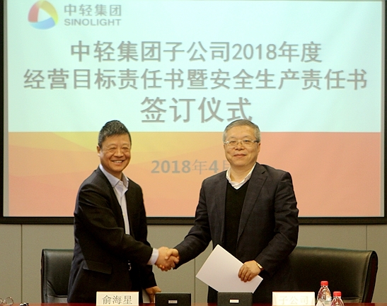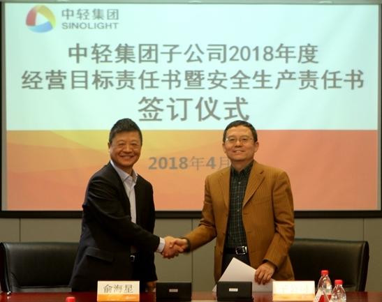 此次經營目標責任書和安全生產責任書的簽訂是對中輕集團2018年總體生產經營任務和安全生產任務的貫徹和落實。