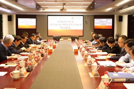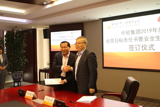 4月10日下午,中輕集團在中輕大廈舉行2019年度經營目標責任書暨安全生產責任書簽訂儀式。集團公司領導、總部各部室負責人、子公司主要負責人出席簽字儀式,黨委委員、副總經理任建平主持簽字儀式。
