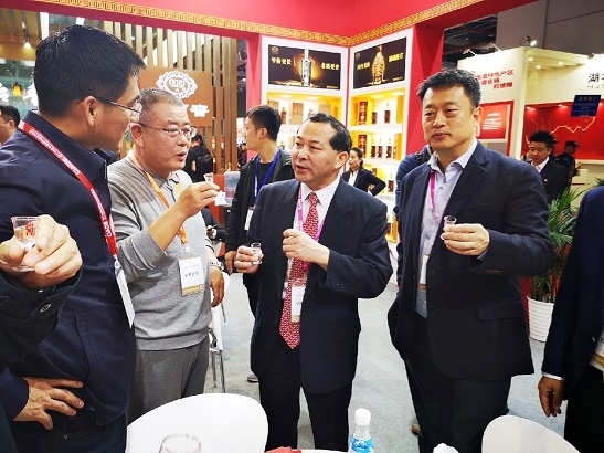 郭建全一行參觀展會,與食品院有技術合作的五糧液、酒鬼酒、國臺酒、釣魚臺酒、秦含章酒、梁大師等企業負責人深入溝通服務合作。