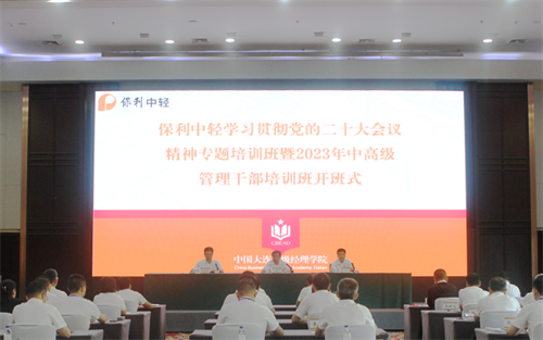 8月28日至9月1日,保利中輕在中國(guó)大連高級(jí)經(jīng)理學(xué)院北京教研中心舉辦學(xué)習(xí)貫徹黨的二十大會(huì)議精神專(zhuān)題培訓(xùn)班暨2023年中高級(jí)管理干部秋季培訓(xùn)班。保利中輕總部主任助理以上干部、子公司總經(jīng)理助理以上領(lǐng)導(dǎo)干部、海誠(chéng)股份下屬子公司主要領(lǐng)導(dǎo)參加開(kāi)班儀式。