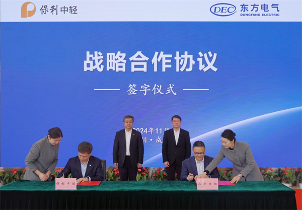 11月19日,保利中輕與東方電氣集團(tuán)國際合作有限公司(簡稱“東方國際”)在蓉簽署戰(zhàn)略合作協(xié)議。保利集團(tuán)總經(jīng)理助理,保利中輕黨委書記、董事長安勝杰;東方電氣股份有限公司副總裁,東方國際黨委書記、董事長李建華出席儀式見證簽約。