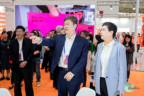 趙國昂一行參觀本屆展會現場,與展商代表進行面對面交流,了解企業生產經營、特色產品、設備情況,并對CIDPEX展會為行業搭建起的溝通洽談平臺給予充分肯定。