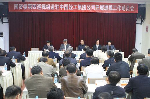 11月15日,“國資委第四巡視組進駐中國輕工集團公司開展巡視工作動員會”在集團公司總部召開。國資委第四巡視組組長路耀華,國資委監事會主席尋寰中,國資委巡視辦副主任宋亞晨,國資委第四巡視組副組長熊曉先,國資委第四巡視組成員尹元、于學范、陳為群、張慶安、馬洪興、古海云、姚利軍出席會議,集團公司黨政領導班子全體成員,近年退休老領導,各部室負責人,各二級公司黨政主要負責人,紀委書記、部分在京職工代表等共60余人參加了動員會。會議由集團公司總經理俞海星主持。