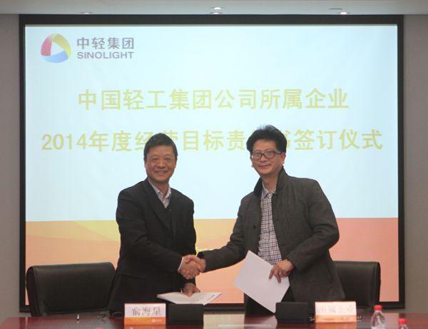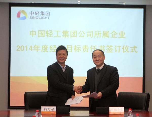 集團公司總經理俞海星日化院院長王萬緒簽訂經營目標責任書