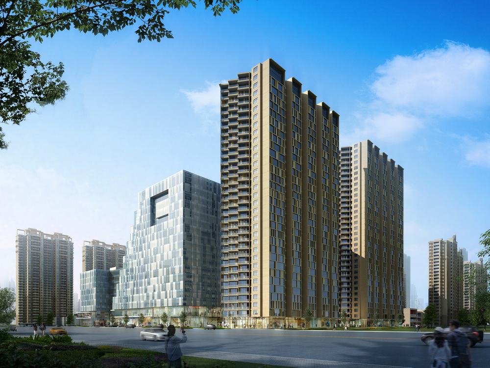 本項目位于江蘇昆山花橋,曹安路與兆豐路交匯處,是昆山市重點開發區域之一。本項目的規劃設計在功能結構與布局上,在城市總體規劃的引導下,積極引入城市設計的內容,發揮建筑設計及環境設計的能動作用。本工程為商住混合用地,主要含4棟高層住宅樓、一棟商業辦公綜合樓。基地用地面積31438.4㎡,容積率4.96,地上計容總建筑面積156267㎡。地下總建筑面積約27590㎡。